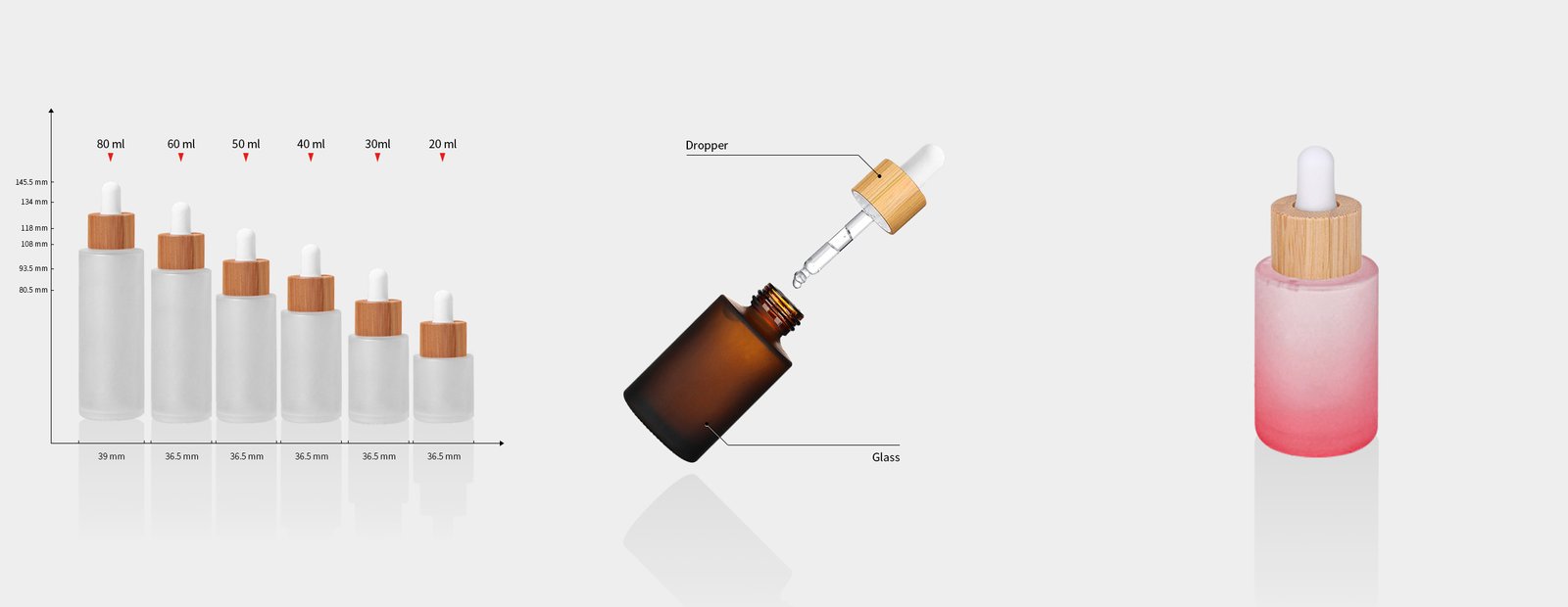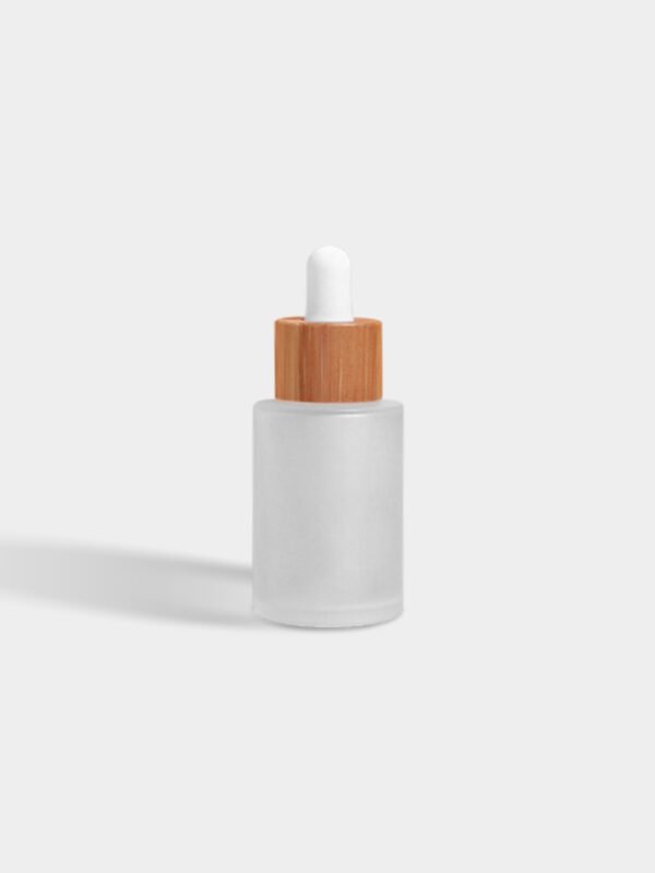 Clear Frosted Flat Shoulder Glass Bottle With 20mm Neck Bamboo Ring Dropper Bottle